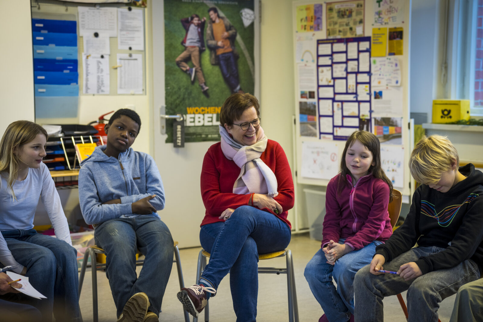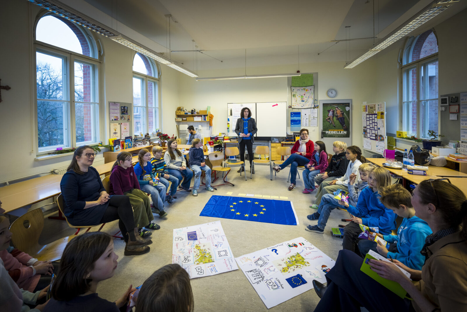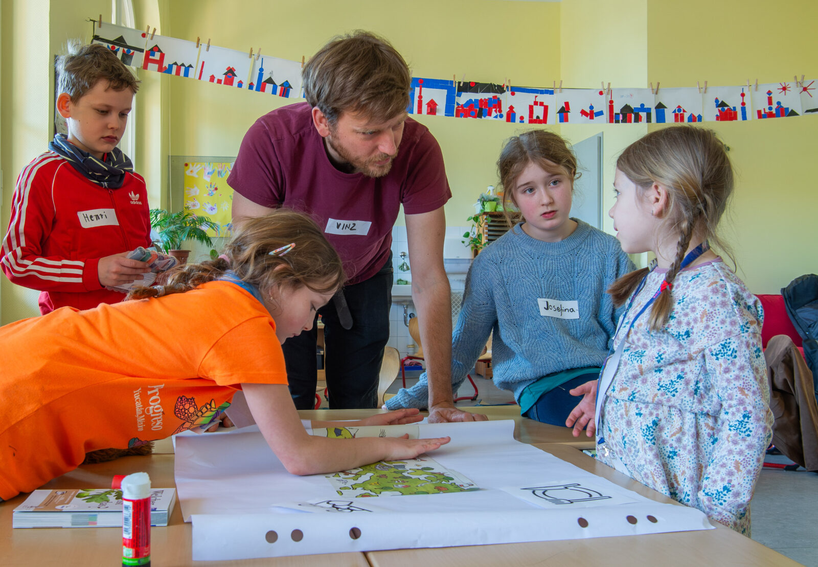 Nachdem intensiv am Konzept der Kinder-AG getüftelt worden war, fand sich das Ergebnis bereits im Kurs-AG-Angebot des zweiten Schulhalbjahres 2024/2025. Die Kinder-AG „Demokratie-checker:in: Deine Stimme zählt!“ ist ein wichtiger Baustein der AG „Demokratie & Vielfalt“ (Demokratiebildung). Auf die 10 Kinder, die sich angemeldet hatten, warteten Spiele rund um die Themen Wahlen und Mitbestimmung sowie ein Ausflug in den Bundestag. Ein weiteres Highlight der AG war der Workshop „Demokratie und Kinderrechte“ im Futurium. Gemeinsam mit Eltern der Eltern-AG „Demokratie & Vielfalt“ erarbeiteten sich die Schüler:innen der Klassenstufen 3-6 eigene Checker:innen-Fragen zum Bereich der AG. In der Vorbereitung des Termins im Futurium lernten sie die Wichtigkeit von Grund-/Menschen-/Kinderrechten kennen und diskutierten, was sie als wichtigen Bestandteil der Schulgemeinschaft bis wann umsetzen wollen. Die Kinder-AG „Demokratie-checker:in: Deine Stimme zählt!“ wurde im ersten Schulhalbjahr 2025/2026 erneut angeboten. Zum Teil ähnelten sich die Inhalte, es gab allerdings auch neue Highlights. Dazu zählte ein Besuch des Bundestages, um der Checker:innen-Frage „Was macht eigentlich ein Mitglied des Bundestages?“ auf den Grund zu gehen. Zudem besuchte die Europaabgeordnete Gaby Bischoff die Schule. Sie diskutierte bei diesem Besuch gemeinsam mit der Gruppe der Klassensprecher:innen die Checker:innen-Frage „Was macht eigentlich ein Mitglied des Europäischen Parlaments?“. Im zweiten Schulhalbjahr 2025/2026 wird nunmehr die Kinder-AG „Die Welt ist bunt! Kunst gegen Rassismus“ angeboten. Sie richtet sich an Kinder, die Lust auf Farbe, Fantasie und kreative Ideen haben. Dabei geht es um die eigene Identität der Kinder, um Freundschaft, Vielfalt und ein buntes Miteinander.