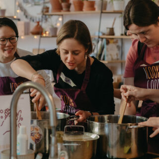 - Begegnungsformat Kochen mit Freundinnen: Monatlich findet eine Kochveranstaltung statt, die von einer festen Orga-Gruppe von Frauen* organisiert wird. Diese Veranstaltung dient als Safer-Space für Frauen* vielfältiger Herkunft, die sich beim gemeinsamen Kochen begegnen und im Zuge dessen Gemeinsamkeiten entdecken und gegenseitig Vorurteile abbauen. Durch die gemeinsame Organisation der regelmäßigen Veranstaltungen wird das Gemeinschaftsgefühl und der soziale Zusammenhalt sowie die Selbstwirksamkeit der Frauen* gestärkt. In diesem Format bringen einige Frauen auch ihre Kinder mit, was für sie den Vorteil hat, dass sie sich trotz ihrer Mutterrolle ehrenamtlich einbringen und partizipieren können, was in vielen Räumen so nicht möglich ist.