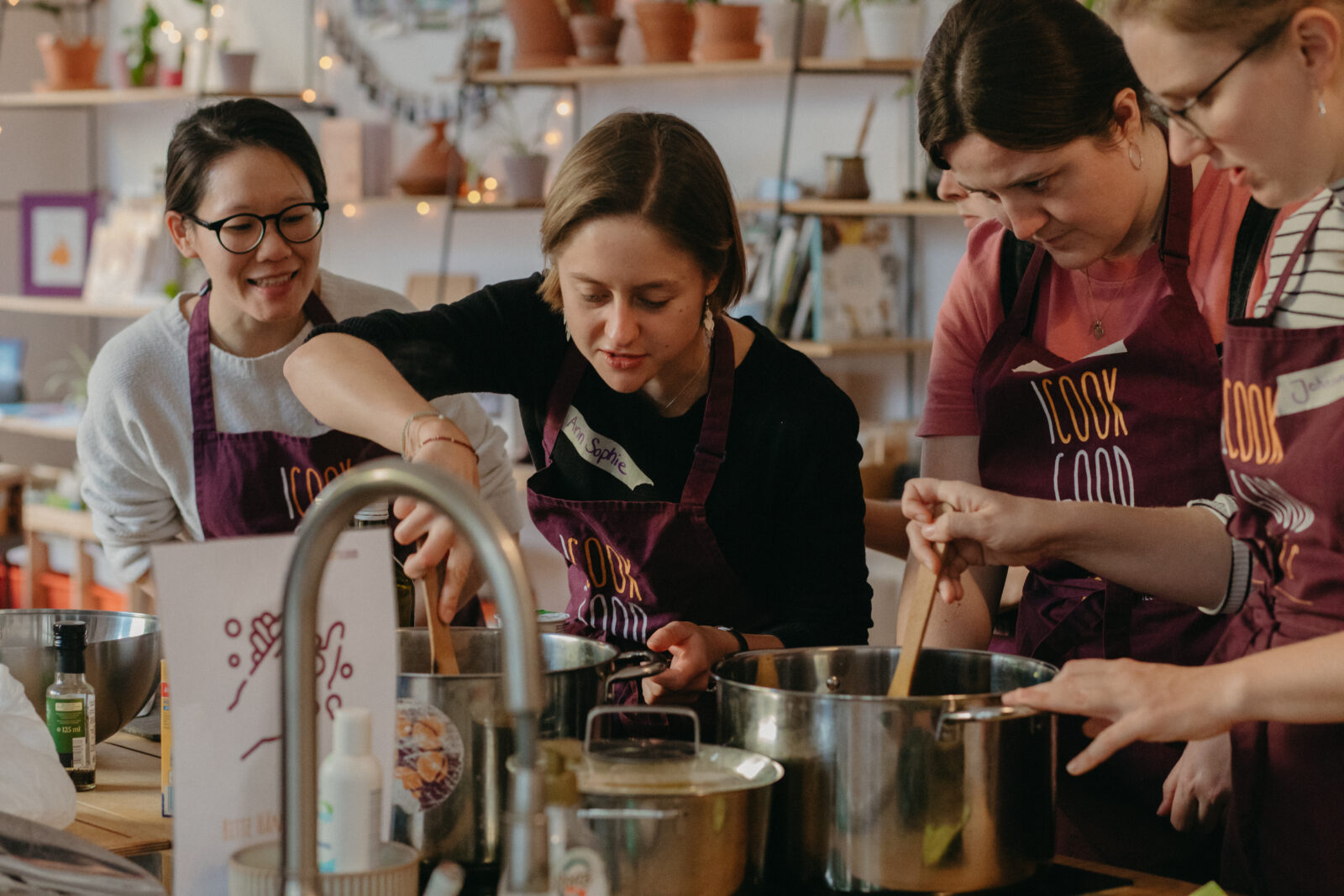 - Begegnungsformat Kochen mit Freundinnen: Monatlich findet eine Kochveranstaltung statt, die von einer festen Orga-Gruppe von Frauen* organisiert wird. Diese Veranstaltung dient als Safer-Space für Frauen* vielfältiger Herkunft, die sich beim gemeinsamen Kochen begegnen und im Zuge dessen Gemeinsamkeiten entdecken und gegenseitig Vorurteile abbauen. Durch die gemeinsame Organisation der regelmäßigen Veranstaltungen wird das Gemeinschaftsgefühl und der soziale Zusammenhalt sowie die Selbstwirksamkeit der Frauen* gestärkt. In diesem Format bringen einige Frauen auch ihre Kinder mit, was für sie den Vorteil hat, dass sie sich trotz ihrer Mutterrolle ehrenamtlich einbringen und partizipieren können, was in vielen Räumen so nicht möglich ist.