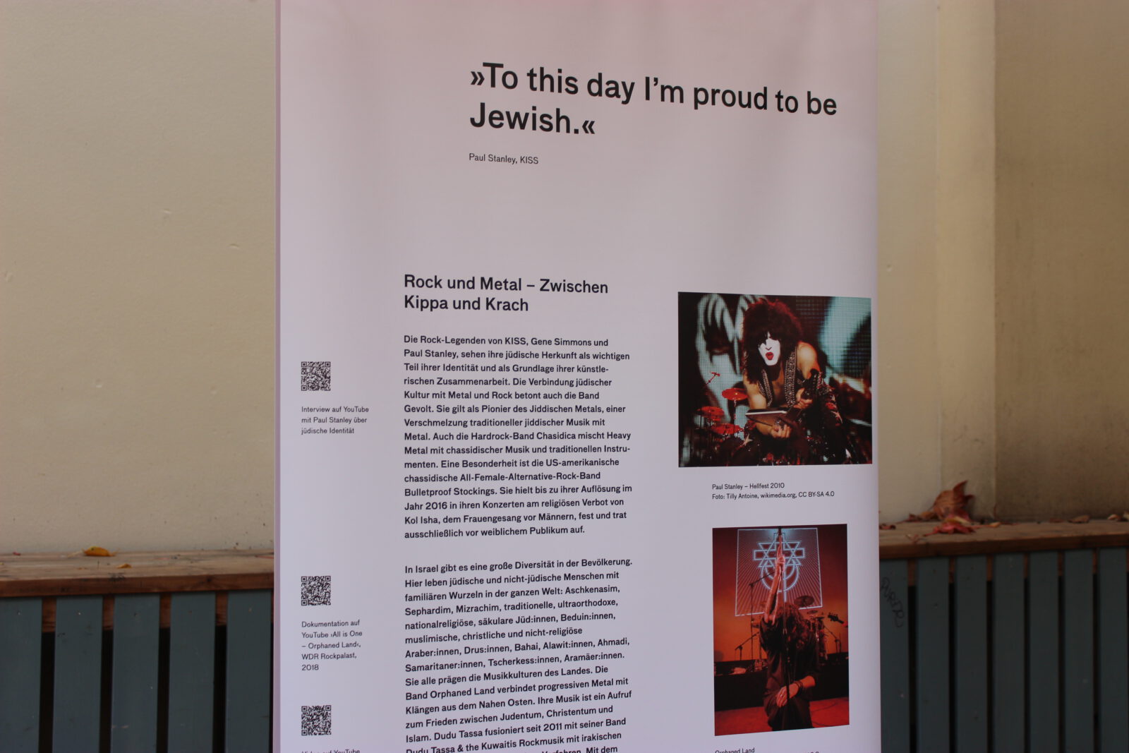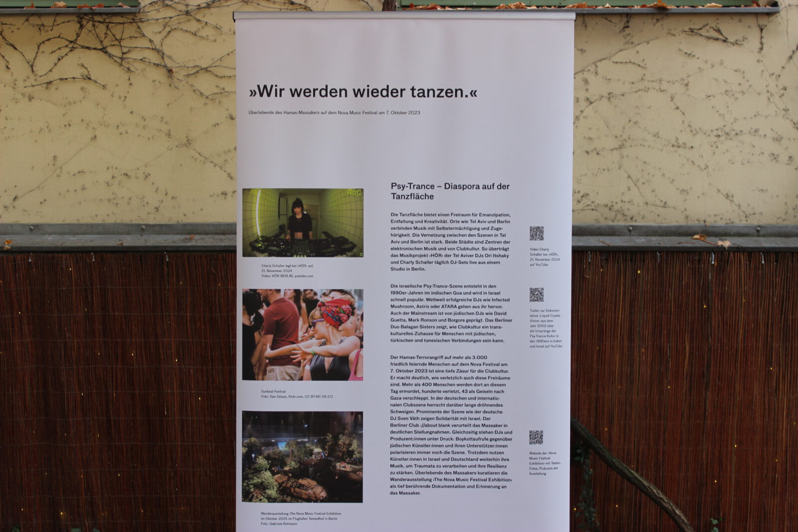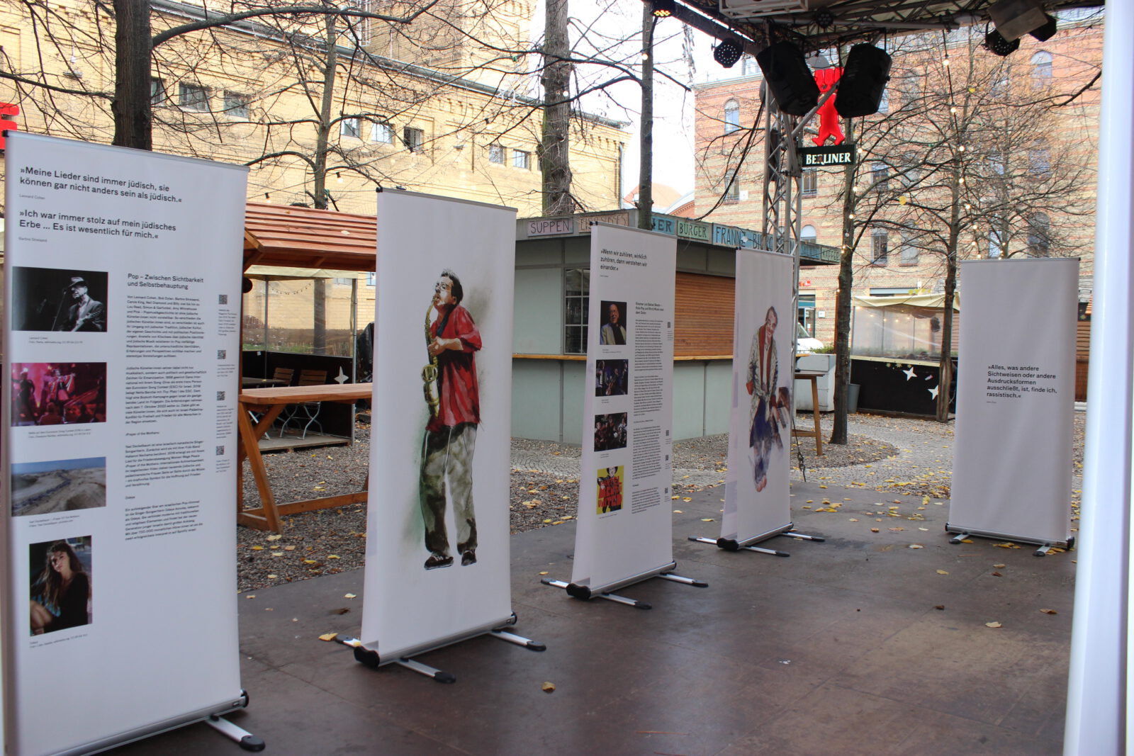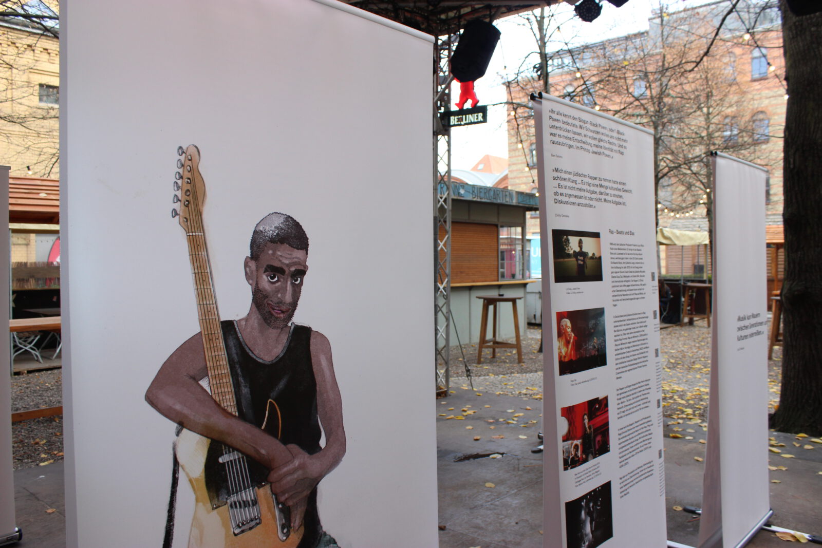 Seit dem Massaker der Hamas in Israel am 7. Oktober 2023, den Geiselnahmen und dem Krieg in Gaza sind weltweit Antisemitismus und der Hass auf den Staat Israel massiv angestiegen. Dies zeigt sich auch in Berlin. Viele Menschen, Initiativen, Veranstaltungsstätten, Vereine und Verbände, die sich solidarisch mit Israelis und Juden und Jüdinnen hier zeigen, sind Anfeindungen, Ausgrenzungen, Boykottaufrufen, Bedrohungen und Angriffen ausgesetzt. Auch in der Clubkultur ist es seither zu scharfen Auseinandersetzungen und Polarisierungen gekommen. Mit unserer Wanderausstellung „Global Sounds“ möchten wir dem etwas entgegen setzen und machen jüdische Künstler:innen in Klassik, Klezmer, Neuer jüdischer Musik, Balkan Pop, Jazz, Pop, Metal, Punk, Rock, Techno und Deutschrap sichtbar, die sich mit Identitäten, jüdischen Positionen, jüdischer Musik und Jüd:innen in der Musik – teilweise mit deutlichen Bezügen zu Berlin – auseinandersetzen und sich in vielfältigem Engagement für ein friedliches Miteinander einsetzen. Die Ausstellung besteht aus 10 doppelseitigen Outdoor-Rollups mit Zitaten, Illustrationen, Fotos, Bildern, QR-Codes zu Dokumentationen, Musik, Interviews, Fachartikeln, Projekten und einer Playlist. Sie konnte dank einer Kooperation mit der Berlin Music Commission (BMC) in deren Projekt „United Sounds“ vom Archiv der Jugendkulturen in einem interkulturellen und interdisziplinären Team kuratiert und realisiert und erstmalig im November 2025 auf der Most Wanted Music Conference der BMC in der Kulturbrauerei Prenzlauer Berg mehreren tausend Besucher:innen präsentiert werden. Seither wird sie vom Archiv der Jugendkulturen ehrenamtlich ohne finanzielle Förderung oder Unterstützung weiter aufrechterhalten und kann in öffentlichen und nicht-öffentlichen Räumen in Innen- und in Außenbereichen gezeigt werden.