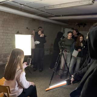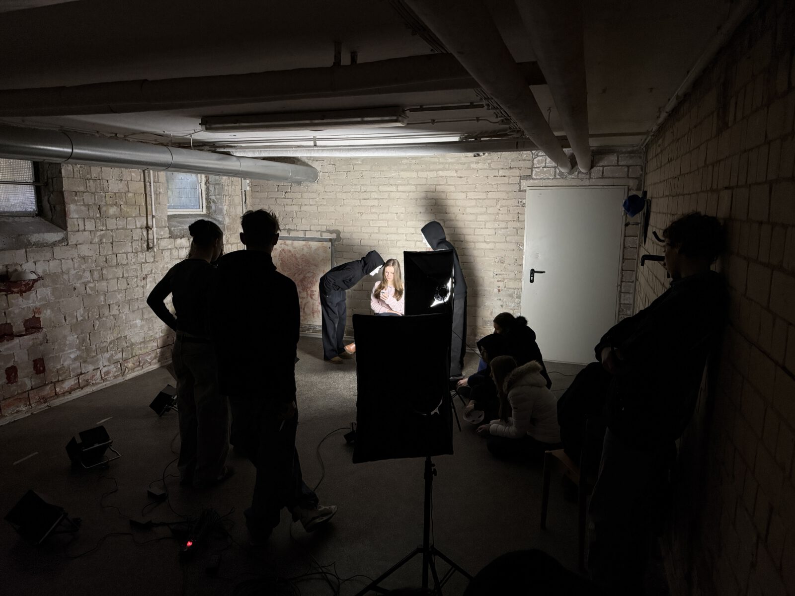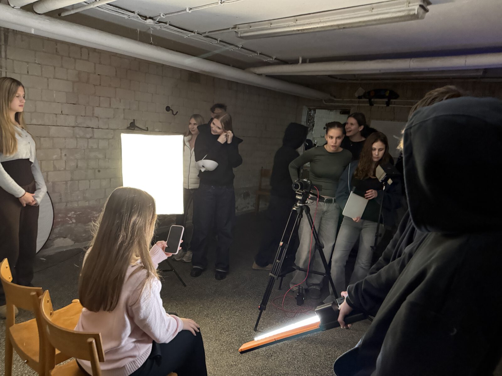 Im nächsten Schritt schrieben wir ein Storyboard und visualisierten unsere Ideen zu dem Thema. Auf dieser Grundlage begannen wir unsere Dreharbeiten mit Kooperationspartnern aus der Region (Kirchengemeinde, Schule etc.)