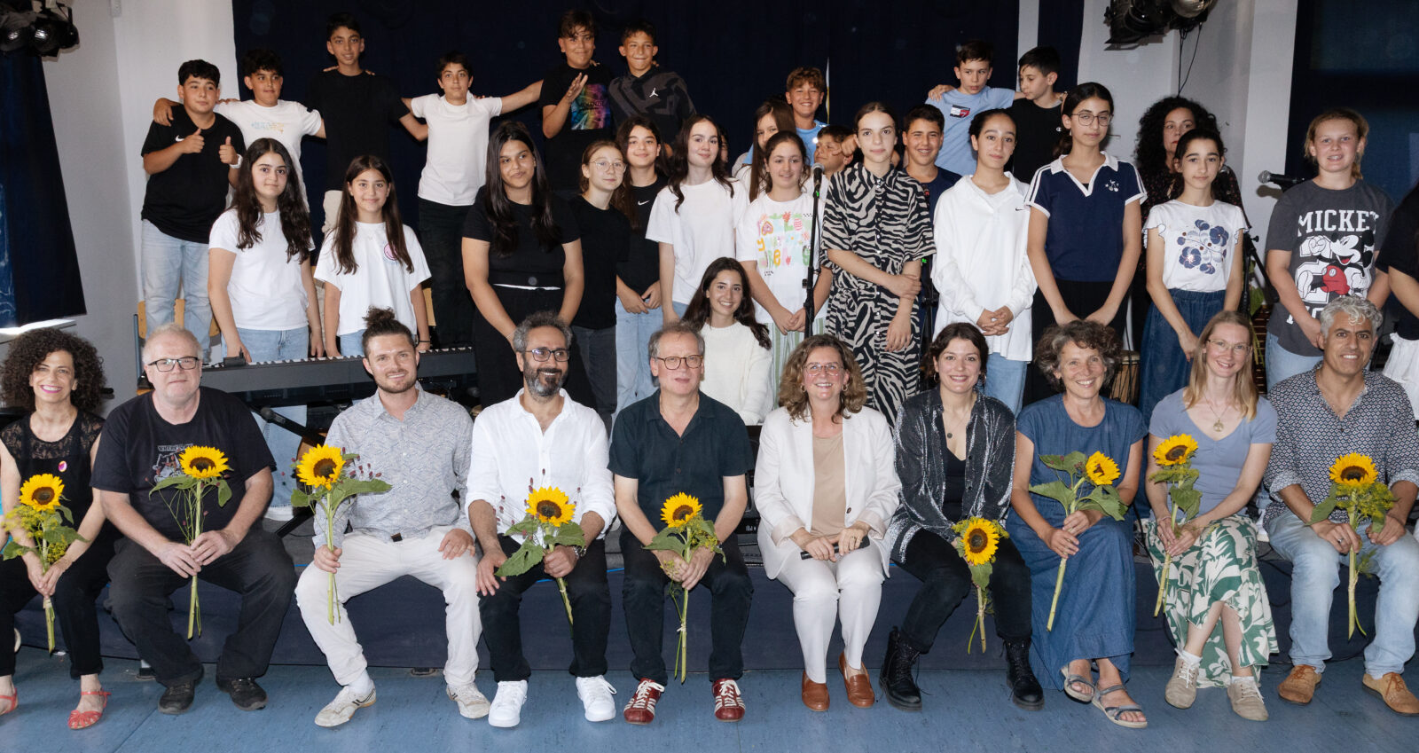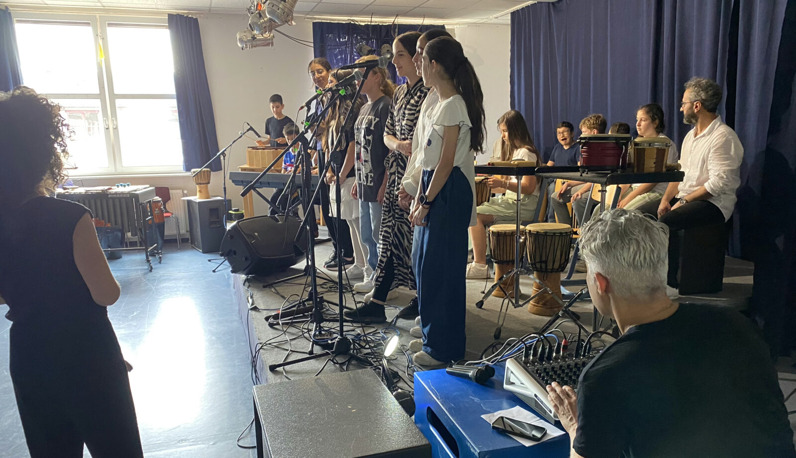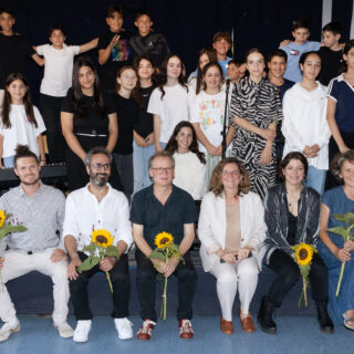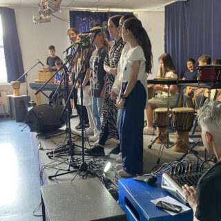 All diese kreative Arbeit war beim Abschlusskonzert fantastisch zu sehen! Mit eigenen Songs auf der Bühne der Albrecht-Dürer-Oberschule in Neukölln zu stehen, dieses Erlebnis mit den Profi-Musiker*innen auf Augenhöhe zu teilen und zusammen das Beste zu geben, war das Ziel und zudem noch ein tolles Publikum für die zwei Neuköllner 5.Klassen im gemeinsamen Konzert zu geben. Das Abschlusskonzert war bezaubernd und überzeugte alle. Für Vincentino, die Musiker*innen und die Kids ein sensationeller Erfolg!