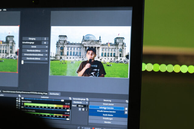 Die Kids erlebten im Projekt, dass Musik eine universelle Sprache sein kann und dass man nicht die gleiche Meinung haben muss, um miteinander Musik zu machen. Neben dem Einstudieren von drei Songs führten die Kids digitale Interviews mit den Musiker*innen zu ihren bewegten Berichten aus Syrien, Südafrika, Israel und Griechenland. Die israelische Cellistin Illay Chester erzählte, wie sie vor 20 Jahren mit palästinensischen Musikern ein Lied auf arabisch spielte und wie wichtig das für sie als Musikerin und Mensch war. Eine Schülerin fasste zusammen: „Demokratie ist ja was miteinander und füreinander.“ In der letzten Phase des Projektes hielten die Kids eigenen Erfahrungen (Mobbing/ Kriege/Ängste) mit dem Geschichtenerzähler Sven Tjaben beim Schreiben fest und texteten auch mit der App Animated Text. Die Musiker*innen erschufen passgenau ein Arrangement mit ihren Texten.