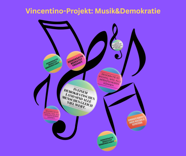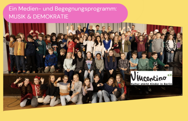 Vincentino e.V. – Kultur stärkt Kinder in Berlin setzt seit 2008 kulturelle Bildungsprojekte an Schulen in herausfordernden Kiezen um und immer wieder wenden wir uns neuen Themenschwerpunkten zu. Wir freuen uns damit den Wünschen der Kinder und Schulen nachzukommen. Die Stärkung der Demokratie liegt uns bei der neuen Projektreihe besonders am Herzen. Zudem sind wir stolz Ende 2024 mit dem Hauptstadtpreis für Toleranz und Integration für unsere Programmreihe „Interkultureller Dialog mit Musik“ ausgezeichnet worden zu sein.