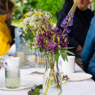 Alles wurde schön dekoriert und es sah festlich aus mit Wimpelketten, weißen Tischdecken und Blumensträußen. Und dann kamen die Picknickgäste und mit ihnen die verschiedensten Speisen für das Buffet. So eine Vielfalt!