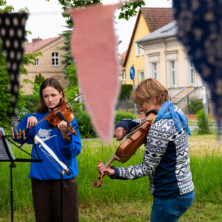 Frauke Hus von der Bürgersymphonie und eine ihrer Schülerinnen spielten einige klassische Stücke auf Geige und Bratsche, was für eine wunderschöne Stimmung sorgte. Danach gab es Kreistänze, angeleitet von Olga, an denen viele teilnahmen. Es hat sichtbar allen viel Spaß gemacht.