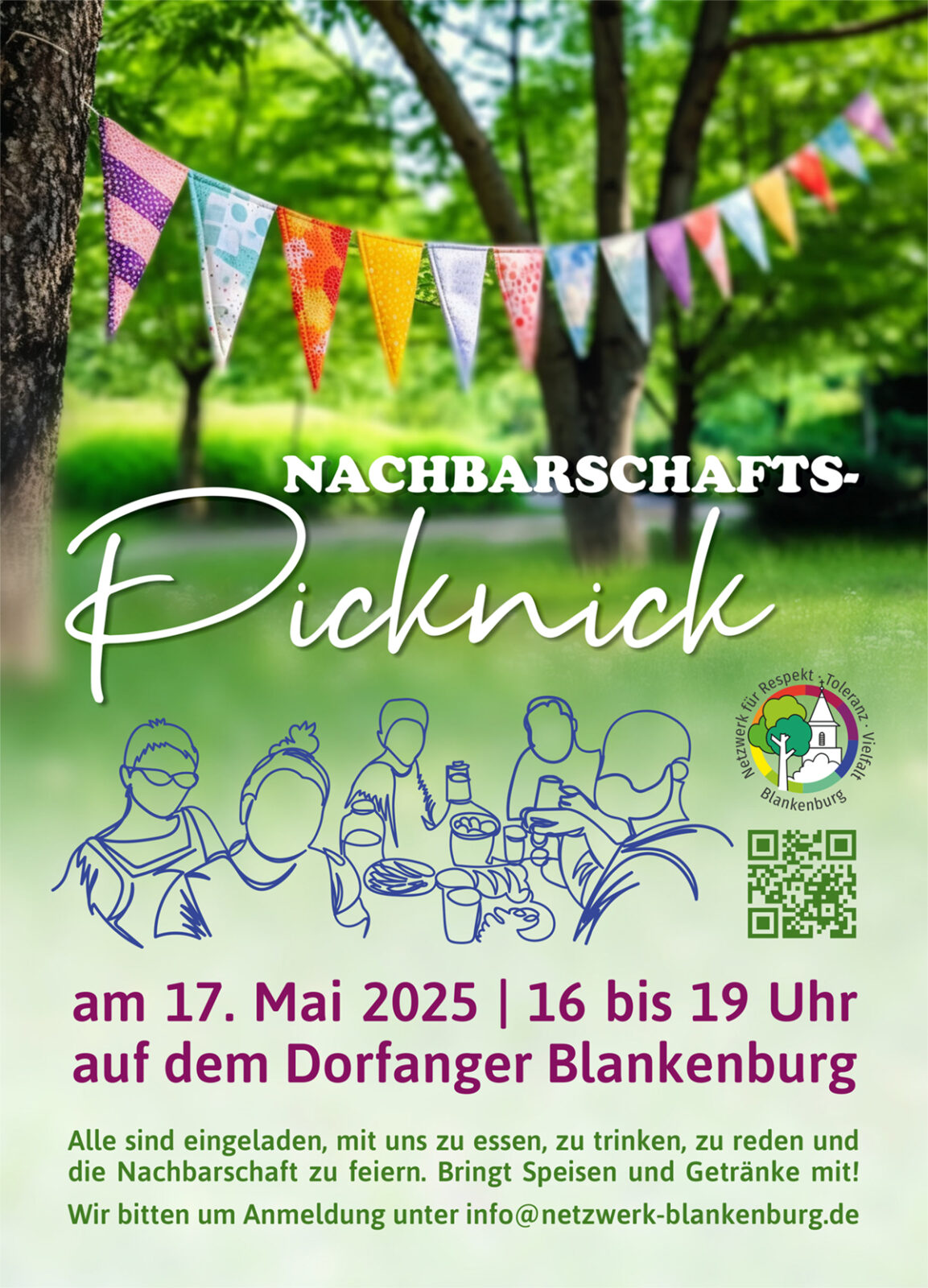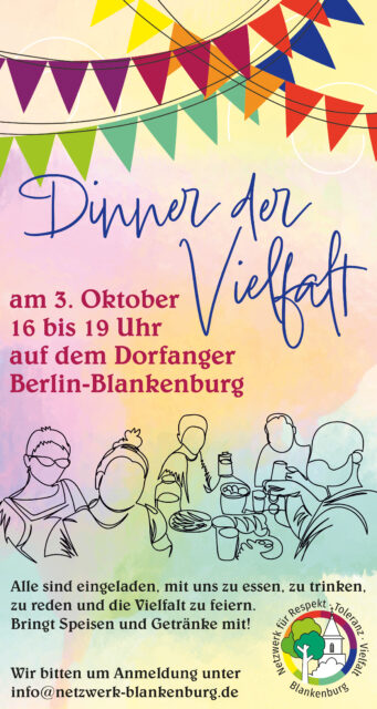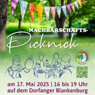 Im Oktober 2024 und im Mai 2025 organisierten wir Picknicks auf dem Dorfanger in Berlin-Blankenburg unter dem Motto „Dinner der Vielfalt“ und „Nachbarschafts-Picknick“.