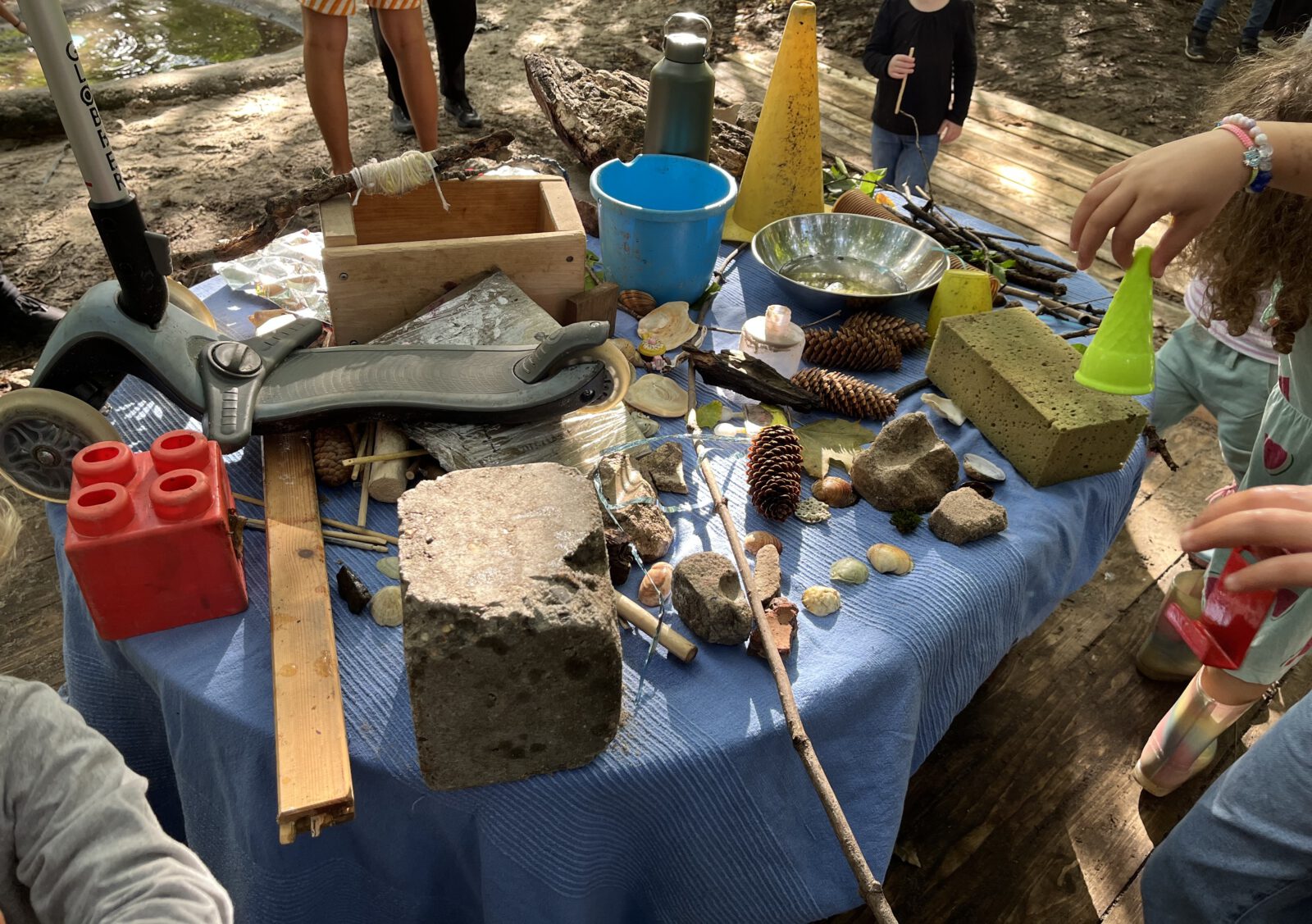 Im Anschluss an das Theaterstück zogen die Kinder und Familien gemeinsam mit dem pädagogischen Team in den Garten und suchten Gegenstände zu den drei Lebensräumen. Die Gegenstände wurden gemeinschaftlich betrachtet und dann bespielt, sodass ein Klangorchester entstand. Dieses wurde aufgenommen und soll, nach Möglichkeit, auf unserer Webseite veröffentlicht werden.